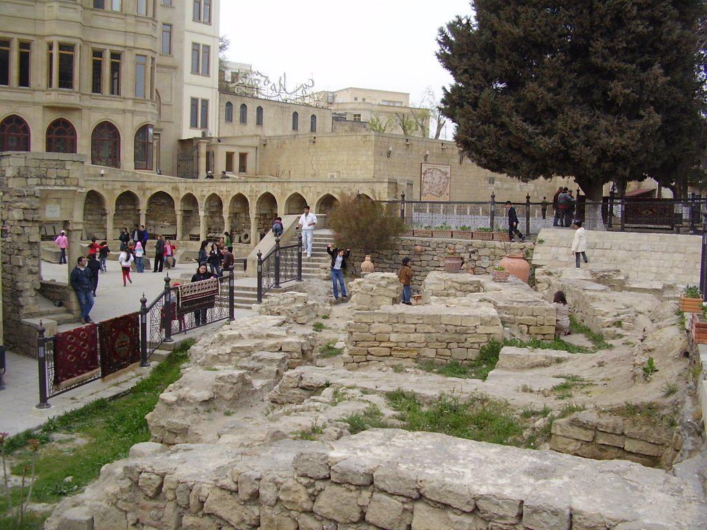 The thrill of an unusually heavy snowfall that transforms the rooftop vistas and has you ducking the snowballs of the gangs of kids beside themselves with glee at the welcome change from the daily street football, dodging the cars and learning to score goals uphill. Or maybe spring, when the grapevines clambering up the balconies of the older buildings soften the stone and iron with a fretwork of green and the parks around the walls are bright with marigolds and stocks and the promise of daisies and hollyhocks to come. Spring, when the old trees, roots and trunks now one with the foundations of the city, flower and give shade to hidden corners and tiny squares. This is the time when the children salvage timber from the latest house renovation to build Novruz bonfires, leaping through the flames to bring luck to the coming year. Or perhaps I’ll miss the long, slow autumn, when those same vines and trees turn golden but refuse to relinquish their leaves until late November. Housewives lay out the wool stuffing for their winter bedcovers to air in the sun, washing flapping on the lines crisscrossing the alleys and the pomegranates and grapes piled high on the vegetable stalls. But best of all are the memories of summers evenings, looking out over the rooftops of the Old City as the setting sun turns the stone buildings golden, the distant sea lies a shimmering blue in a bay of pastel pink and a lonely sail boat tacks back to shore. As the sky darkens to a velvet blue, the swallows swoop and swerve between the buildings, vying for the last insects of the day. A flutter of white doves settles down to roost in the trees around the Shirvanshahs’ Palace and a cat that has dozed lazily on the warm stone steps of the ruined bath house wakes up and stalks off among the fallen stones in search of mice.